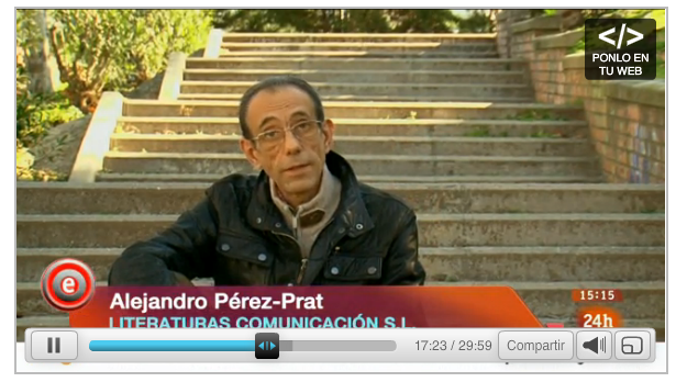 Entrevistan a Alejandro Pérez-Prat – Director editorial, en Canal 24H de TVE. A partir del minuto 17:00, una brevísima entrevista en el programa «Emprende», de Canal 24H, el 23 de Junio de 2013. Emprende – 23/06/13 Emprende – 23/06/13 Se reemite la entrevista el 28 de agosto de 2013